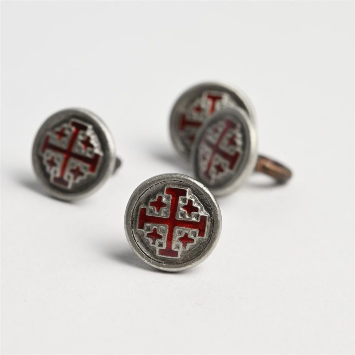 2 Boutons argentés croix de Jérusalem 32L – 20mm