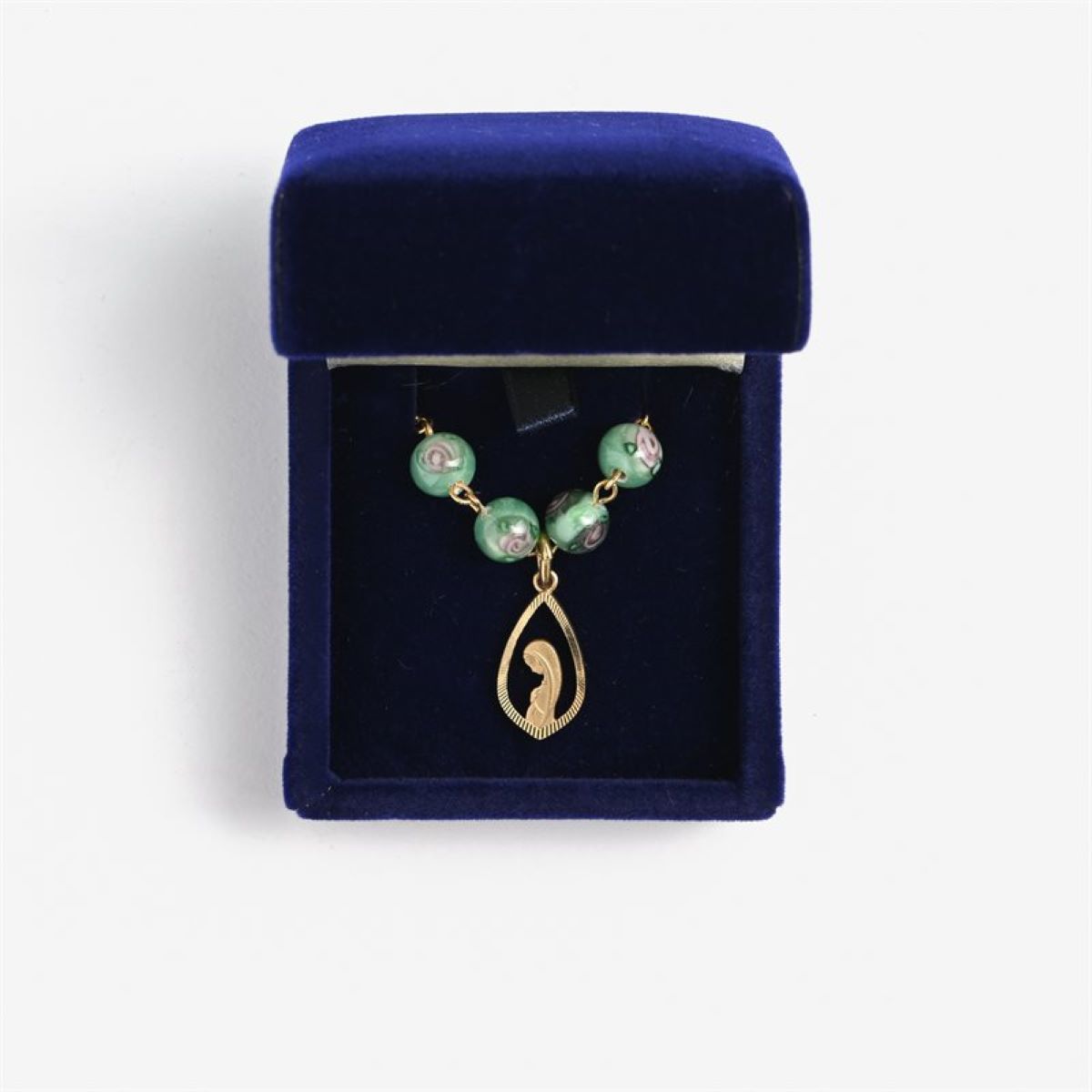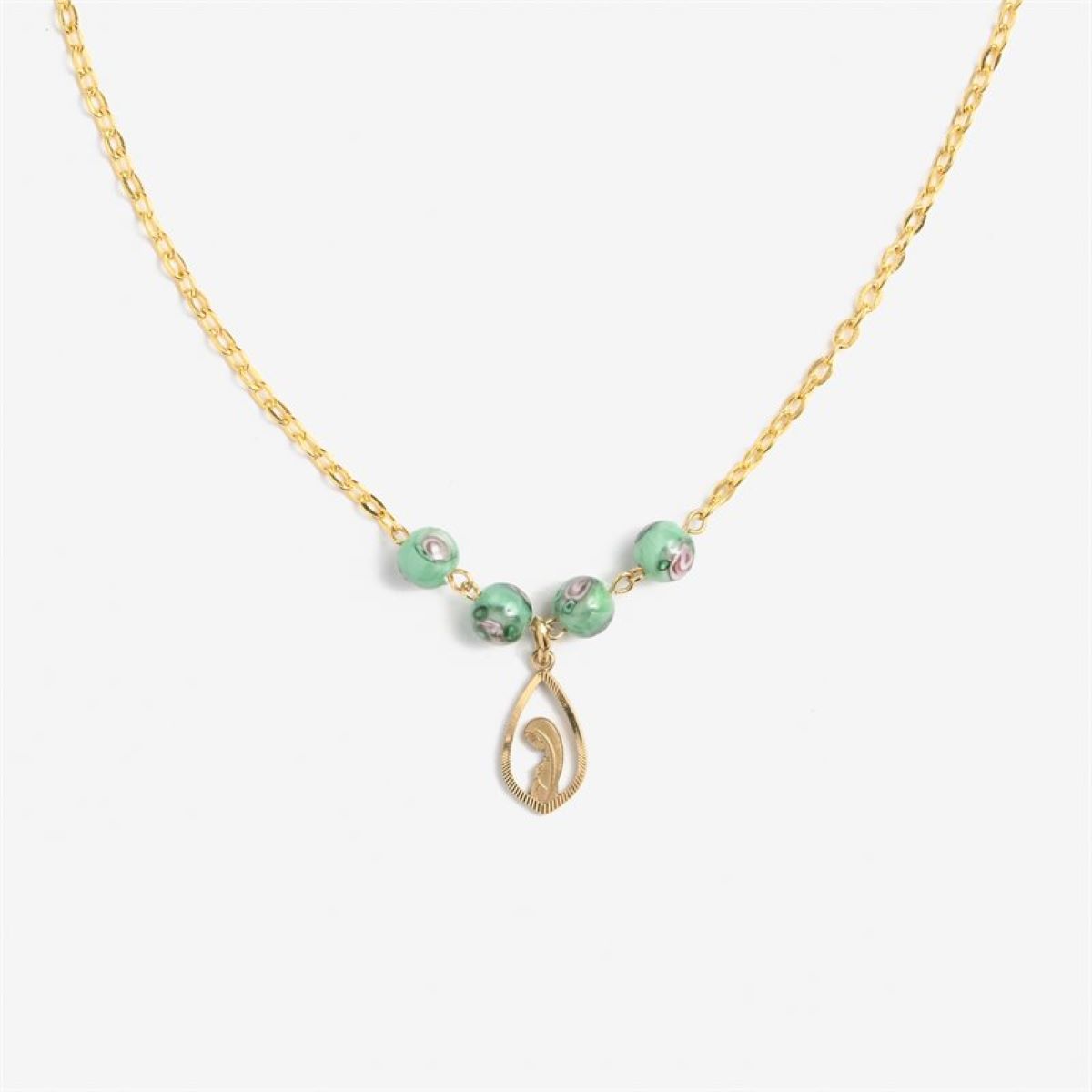 quantité de Collier Marial verre soufflé vert sur chaine dorée